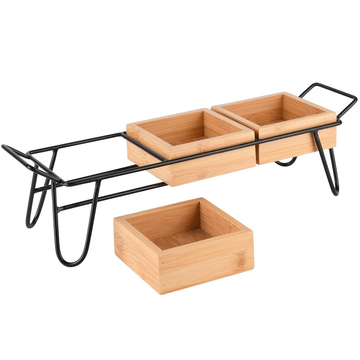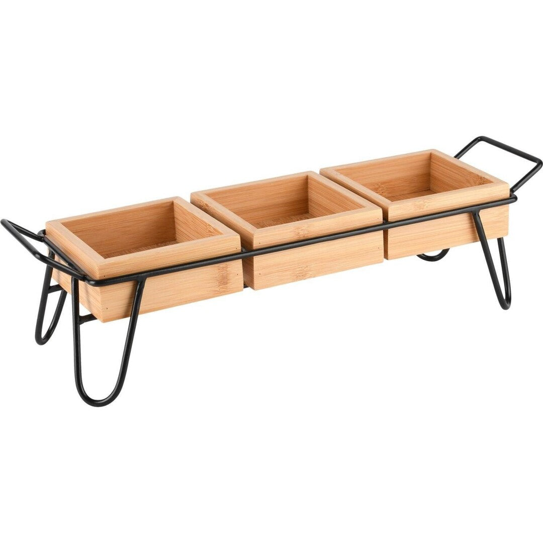 Bandeja Madeira e metal 3 recipientes