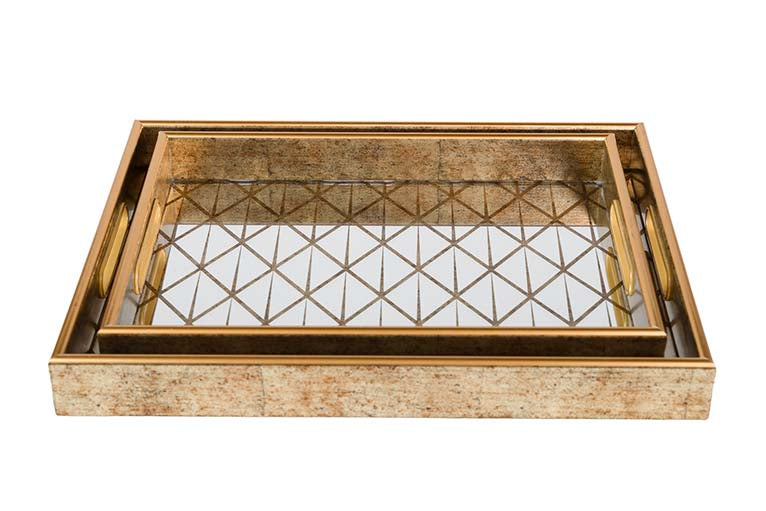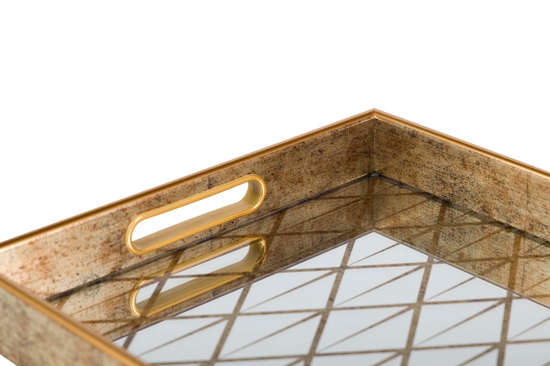 Bandeja vidro retangular dourado